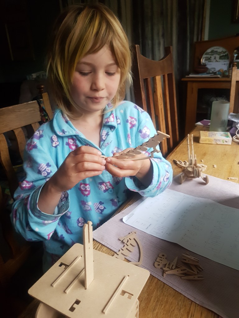 I have got it out several times in the months we’ve had it and there was always a somewhat lack luster response but this time she was right into it and needed very little support. She looked at the instructions and was able to show me that she could paint it after she’d made it (I was interfering)…