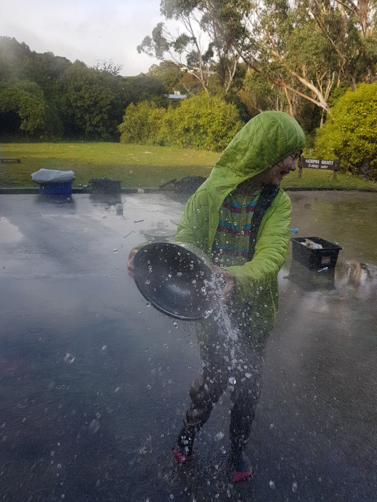 Once you are wet, you are wet, and once you are wet you might as well be properly wet… I think that’s Helena’s philosophy. It’s probably why the hose came out when it was raining.
