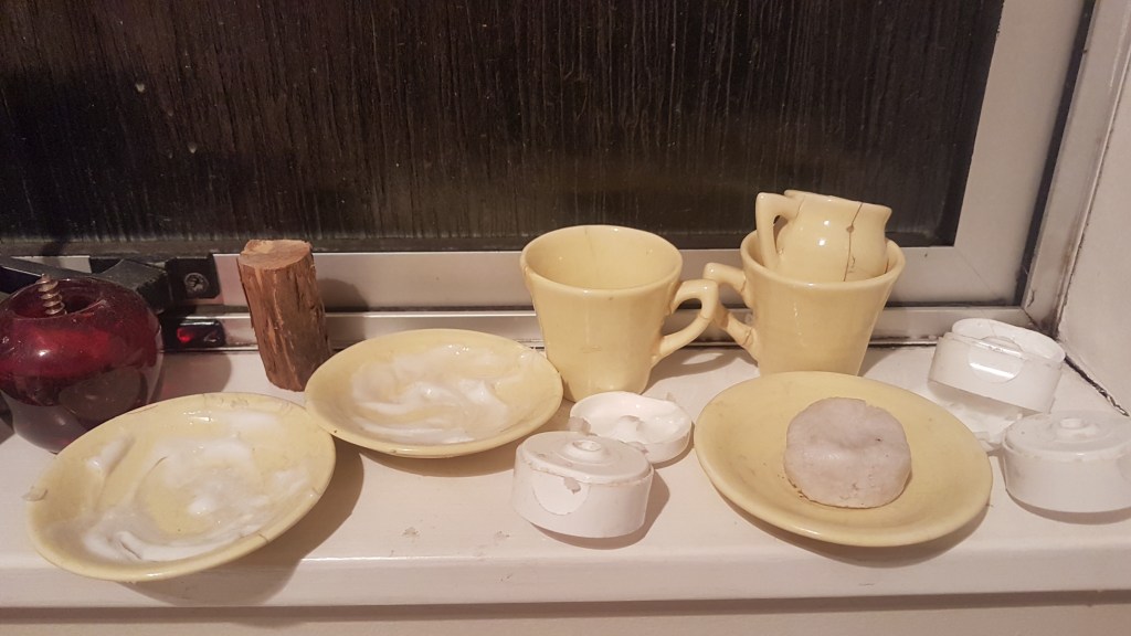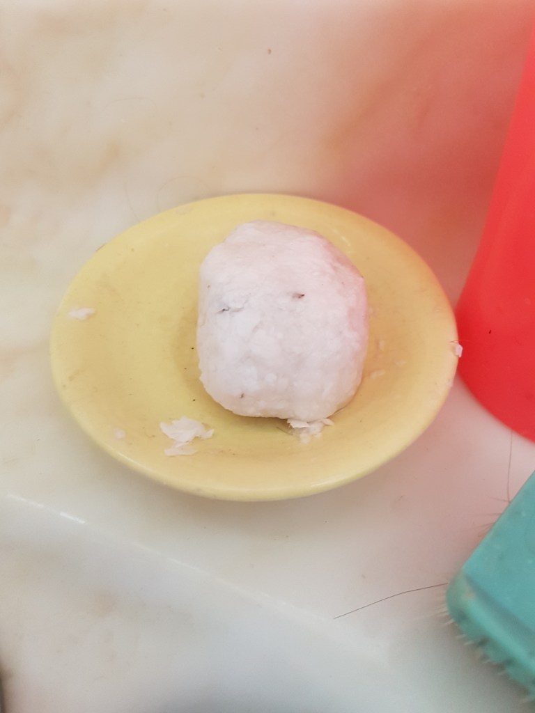 Some how H discovered that this new cream could dry out and make flakes that she could use, it must have dried on one of the lids as they keep appearing covered in the moisturiser.