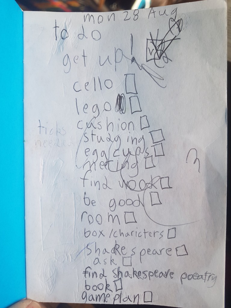 There is some kind of list on the go – written the night before.