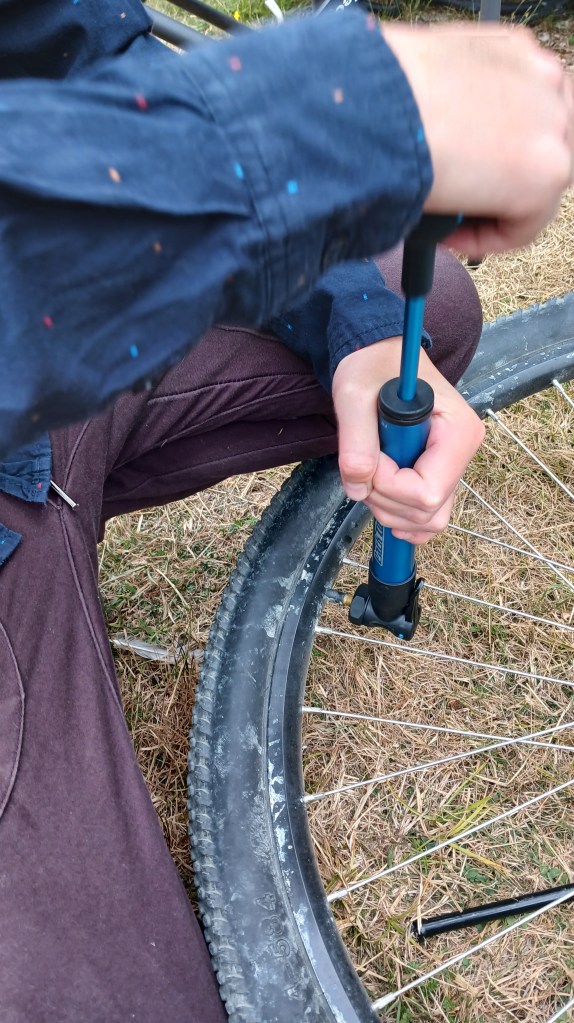 H “enjoyed” it. Well “I am not going to get into mountain biking but I enjoyed it until the last bit when I was exhausted” and she pumped up her tyres!