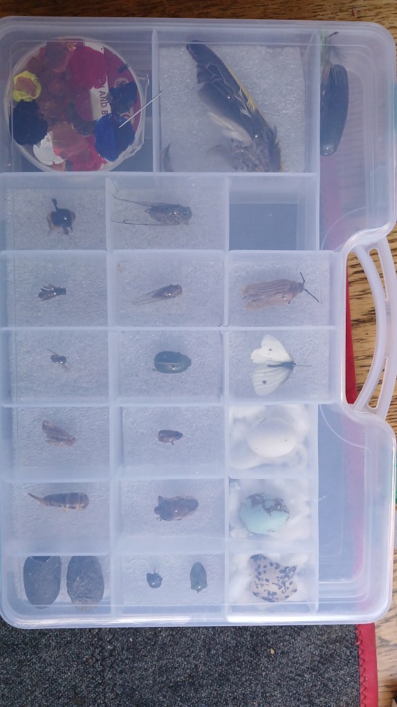 She even closely looked at the eggs in a case at the exhibition to try and identify hers! It feels a little Montessori- sew a seed and push them out into their own world of ideas.