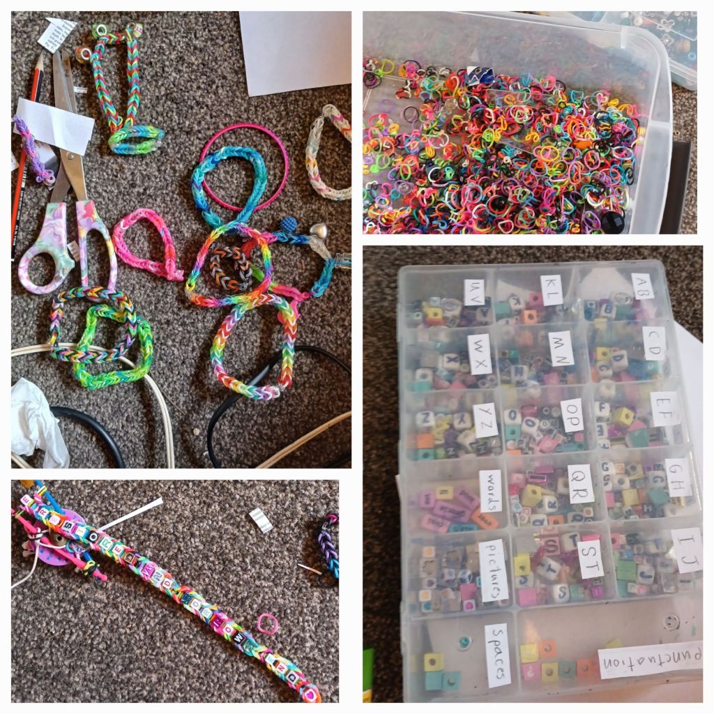 H has been on a project bender now that she is “better”… Loom bands mark II