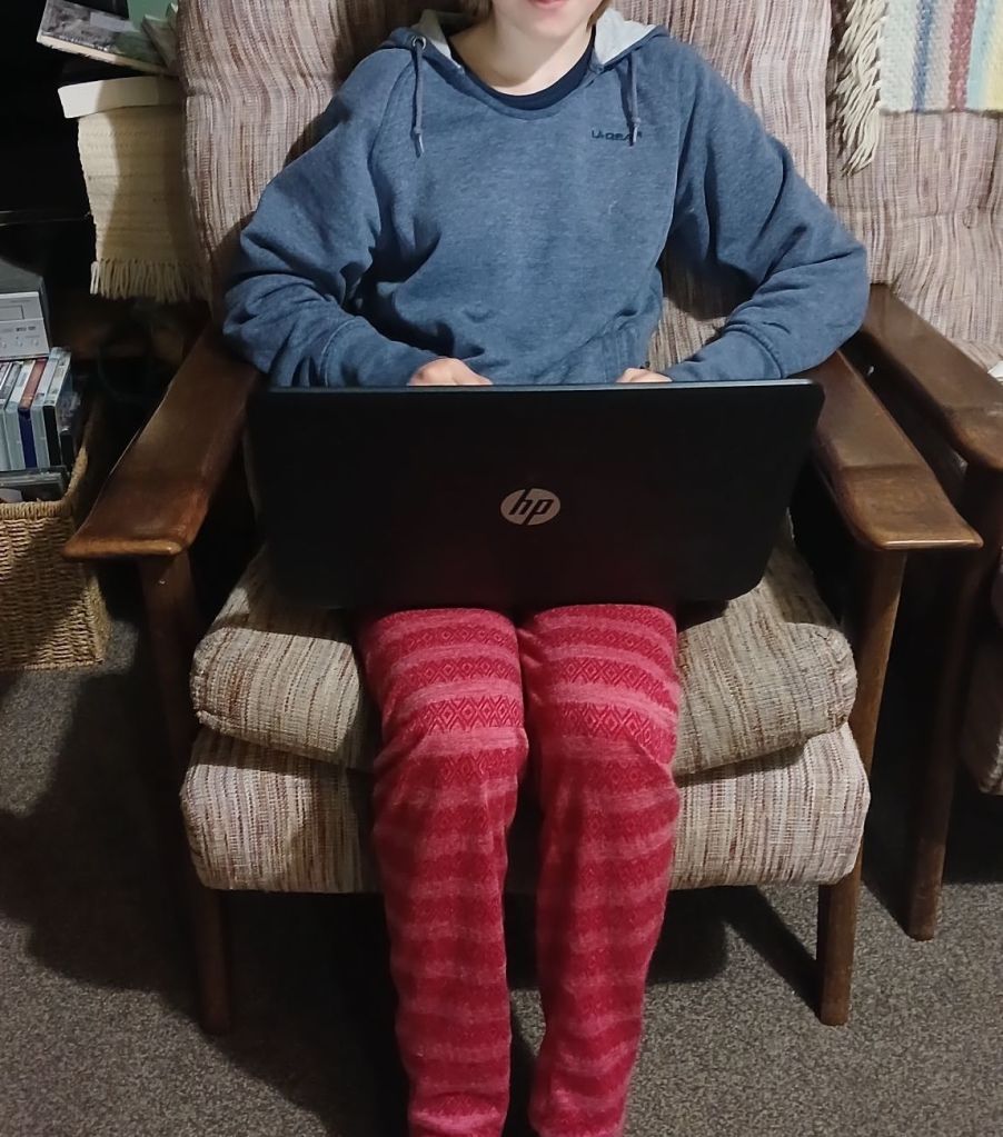 I have hardly heard from my child for days. She goes into her room and communes with her (it’s now hers), laptop.