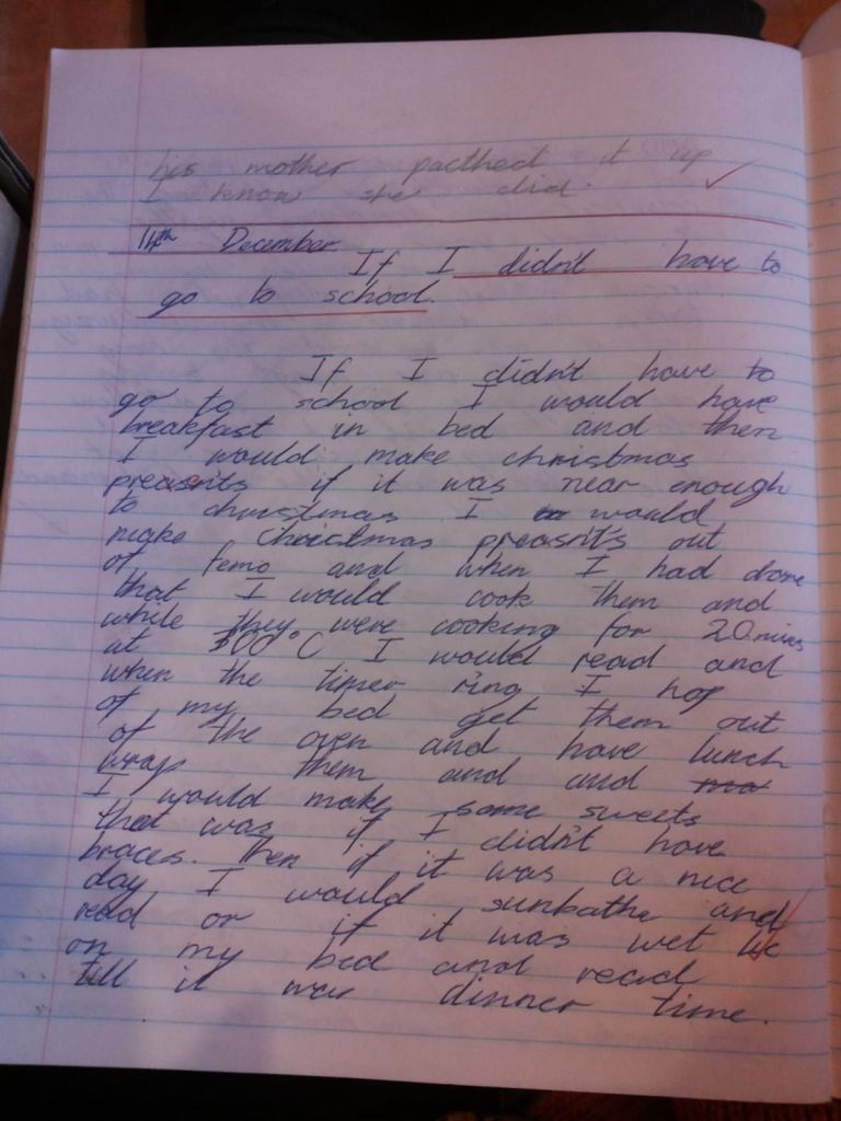 This is my handwriting at her age, not what my handwriting is like now! But I do include full stops now.. and Helena writes in a more interesting, poetic, and everything that is good in writing way than me. It sounds like Helena’s lived life, but she doesn’t feel the need to have a “use” for her FIMO making.